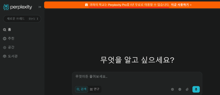 "귀하의 학교는 Perplexity Pro를 1년 무료로 이용할 수 있습니다."